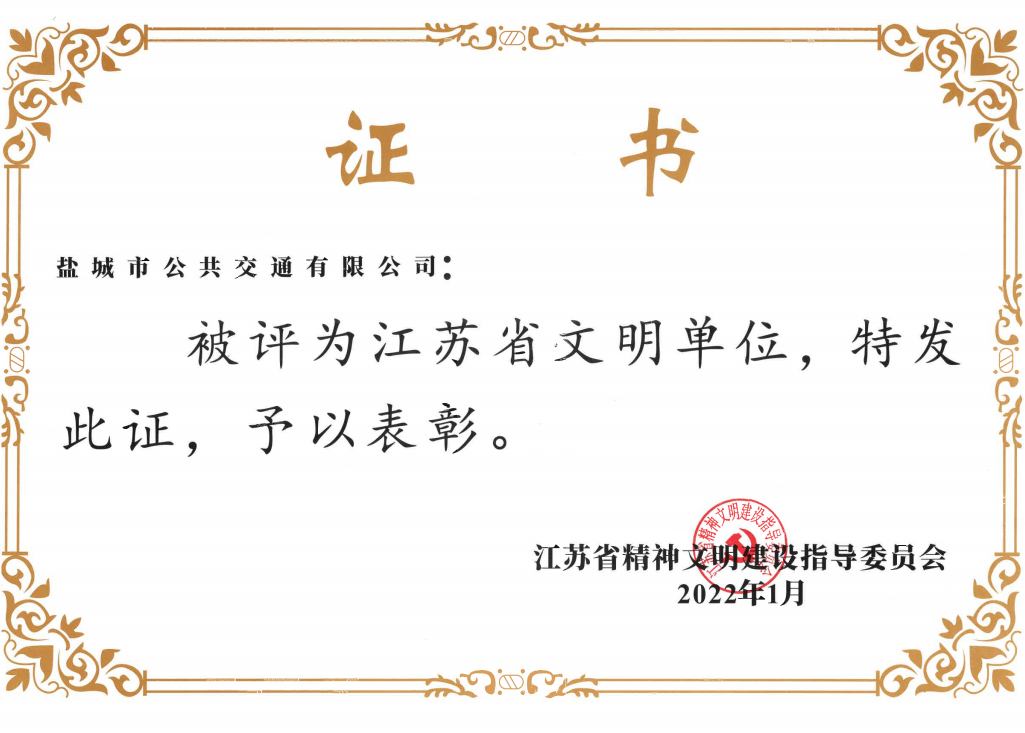 - 2022年4月公司被授予2021年度鹽城市文明創(chuàng)建工作先進集體榮譽稱號